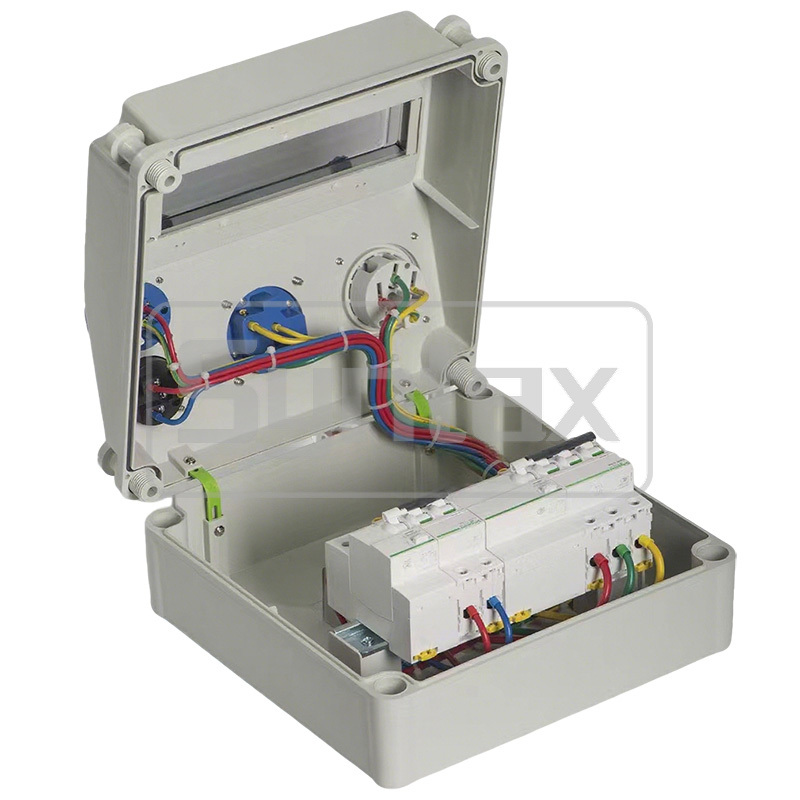 Σύνταξη CX2 Τείχος τοποθετημένο κουτί διανομής 32AMP Τρία Φάση Τέσσερα καλώδιο με Schneider RCBOs 280 * 280 * 155mm