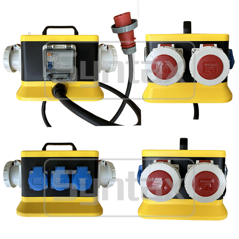 Αυτά τα φορητά κουτιά διανομής ρεύματος 32 AMP MZ8 με βιομηχανικά βύσματα και πρίζες 3ης γενιάς είναι προσαρμοσμένα για ενοικίαση ισχύος σκηνής. Τα κουτιά έχουν βαθμολογία 32A, 400VAC, 3P+N+E IP67 Αδιάβροχα. Το εισερχόμενο βύσμα είναι 5P 32A 400v τριφασικό IP67 με ενσωματωμένο καλώδιο ρεύματος από καουτσούκ 1,8m, το οποίο προστατεύεται από ένα 4P 40A 30mA RCD. Οι εξερχόμενες πρίζες είναι 4 τεμ 5P 16A 400v IP67 Πρίζα τύπου Panel Mounted Straight και 3 τεμ 2P+E 220v 16A μονοφασική πρίζα Schuko (Γερμανικού τύπου), και οι δύο είναι χωρίς προστασία. Τα κουτιά είναι κατασκευασμένα από PC και IP67 Αδιάβροχα, τα οποία είναι ιδανικά για εκδηλώσεις, ειδικά για σκηνή. Μπορούμε να κατασκευάσουμε κατά παραγγελία κουτιά διανομής ρεύματος.