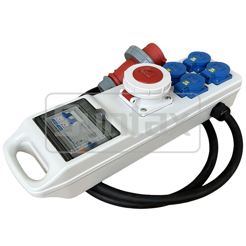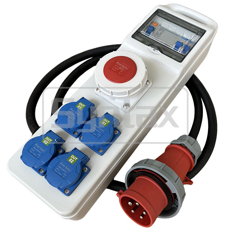 o Box 32AMP τριφασικόείναι κατασκευασμένο από ανθεκτικό πλαστικό - PC, με καλώδιο τροφοδοσίας 1,8 μέτρων 5*6mm2, λαμβάνοντας εύκολα την παροχή ρεύματος από μεγάλη απόσταση. Δίνει 8 πρίζες Schuko 2P+E 16A με την προστασία των MCBs, επιτρέποντας την σύνδεση πολλαπλών εφαρμογών ανά πάσα στιγμή, συν το κουτί έχει μια πολύ χρήσιμη λαβή μεταφοράς που επιτρέπει στον διαχωριστή να μετακινείται εύκολα γύρω από τον χώρο. Μπορείτε να το κρεμάσετε στον αέρα ως κουτί πριζών, ή να το ξαπλώσετε όπως οι πρίζες επέκτασης οικιακής χρήσης. Ο κεντρικός διακόπτης είναι 4P 40A 30mA RCD. Έχει βαθμό IP44 για να διασφαλίσει ότι οι χρήστες παραμένουν ασφαλείς σε σκονισμένα και βροχερά περιβάλλοντα, συν ότι παρέχεται με ένα ανθεκτικό ελαστικό καλώδιο για να εξασφαλιστεί η μέγιστη ηλεκτρική ασφάλεια. Το κουτί είναι συμπαγές μέγεθος περιλαμβάνει φορητή λαβή εύκολης μεταφοράς.