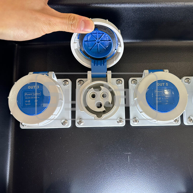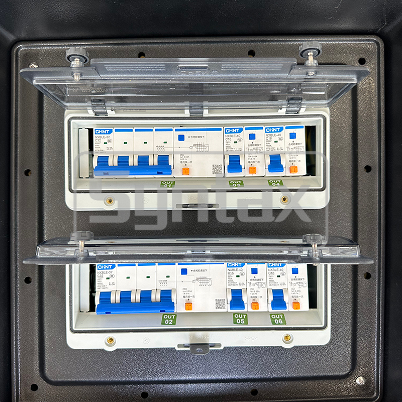| Εξερχόμενο Κύκλωμα 2 | 4 × 3P 16A 220V IP44 Πρίζες Τοποθετημένες σε Πίνακα, Προστατευόμενες από 4 × 1P+N 16A 30mA RCBOs |