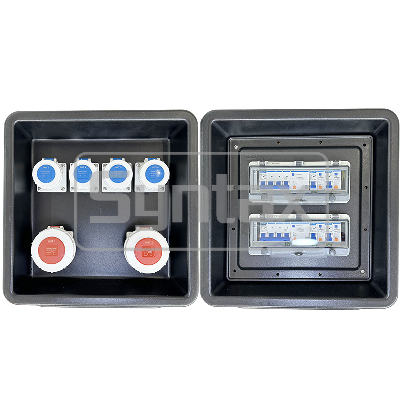 | Εξερχόμενο Κύκλωμα 1 | 2 × 5P 32A 400V IP67 Πρίζες Τοποθετημένες σε Πίνακα, Προστατευόμενες από 2 × 4P 32A 30mA RCBOs |